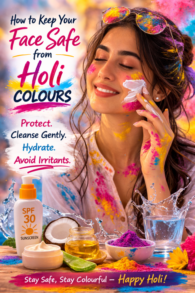 Here’s a structured, dermatologist-approved guide to keeping your face safe before, during, and after Holi.